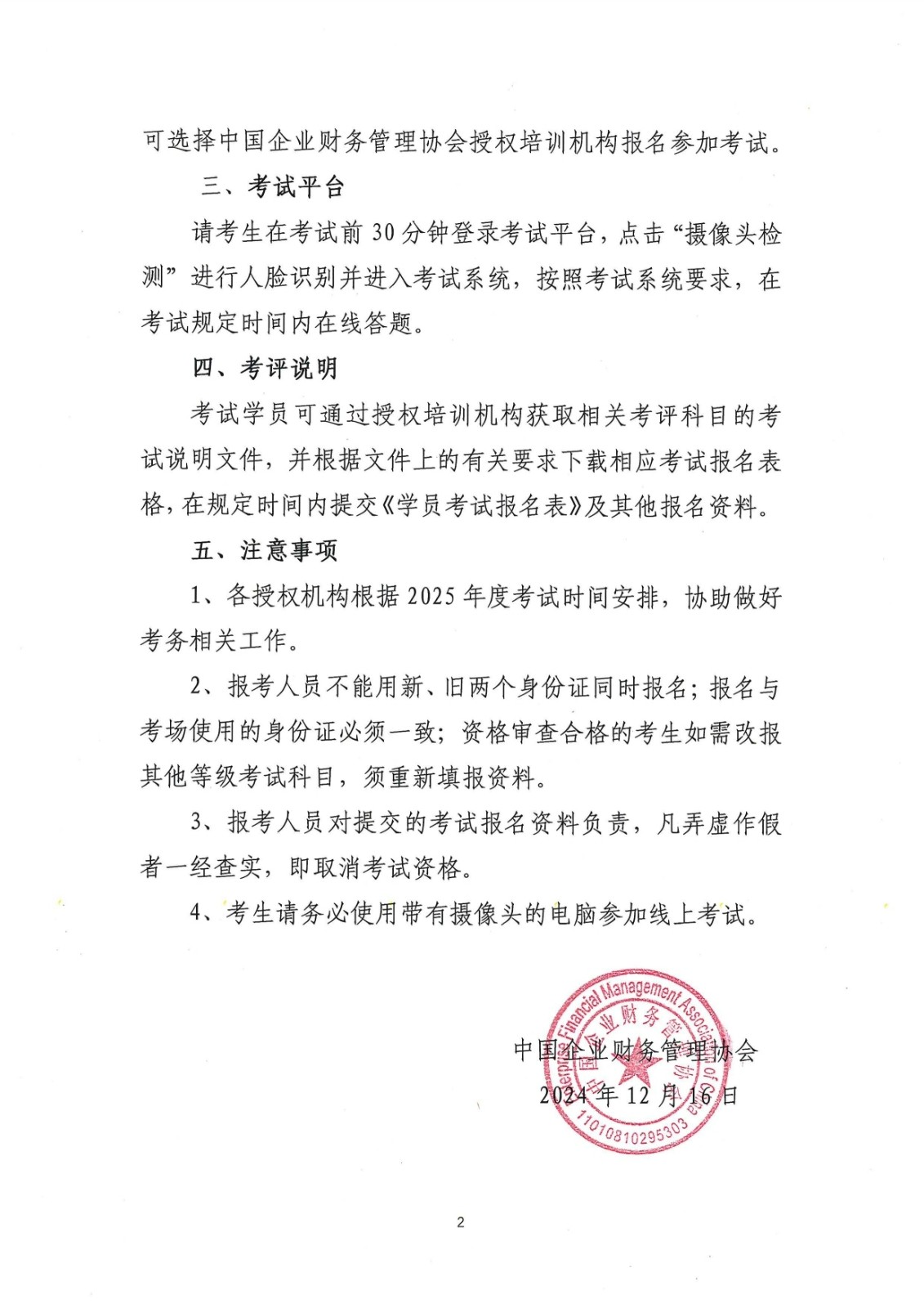 为开展2025年度财务管理师FM(中级、高级)全国统一考试相关工作,经中国企业财务管理协会研究,全国统一考试时间已经确定,现通知如下: